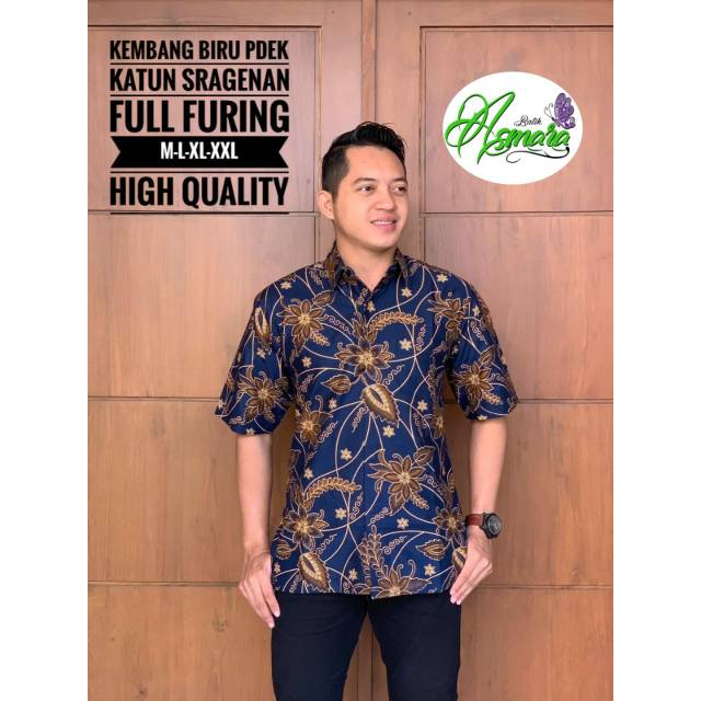 Name: Batik Solo Kembang Biru Pendek Kemeja Pria Katun Halus Sragenan Full Furing