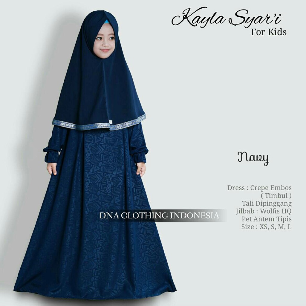 Name: Kayla Syari Kids Navy |400gr Gamis Batik Anak Emboss Syari Original Realpict Halima Dna