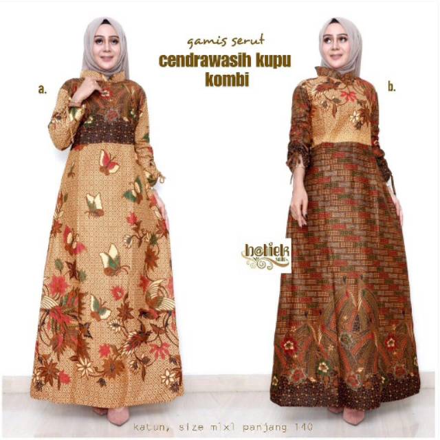 Name: Gamis Serut Cendrawasih Kupu Kombi Batik Cantik Sogan Modis Syari Muslim Seragam Kantor Kerja
