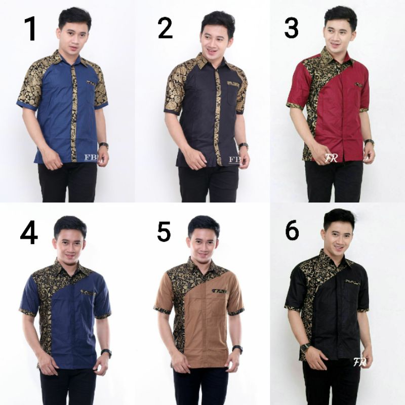 Name: Risna Batik Hrb026 Kombinasi Batik Polos Warna M L Xl Pendek Batik Prada Pekalongan Masa Kini Keren