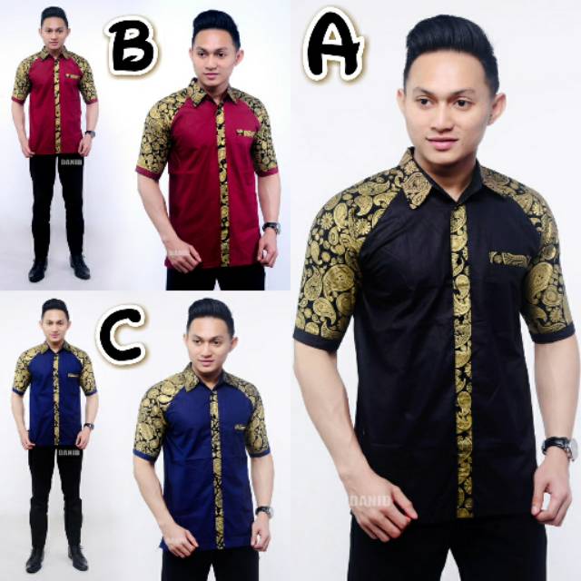 BAJU HEM PRIA KOMBINASI BATIK PERADA METE